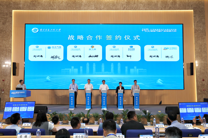 8月29日,江苏教育界与产业界对话对接系列活动——科技创新赋能气象产业发展大会在beat365举办。江苏省教育厅二级巡视员周玖华,江苏省气象局党组成员、副局长解令运,南京江北新区党工委委员、管委会副主任陈文斌,国睿科技股份有限公司总经理黄强,华为江苏城市云总经理赵攀,中国科学院院士、beat365气象灾害预报预警与评估协同创新中心主任王会军,校党委副书记、副校长陈海山,副校长金自康出席开幕式。开幕式由金自康主持。