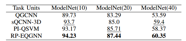实验表明,RP-EQGNN 在 QM9 分子属性预测数据集和 ModelNet40 点云分类数据集上均取得了优于现有经典和量子模型的性能,在部分任务中精度提升超过 30%,同时保持了极低的参数规模。该成果为三维图学习提供了全新的量子计算范式,并为量子机器学习与几何深度学习的融合发展提供了关键支撑。