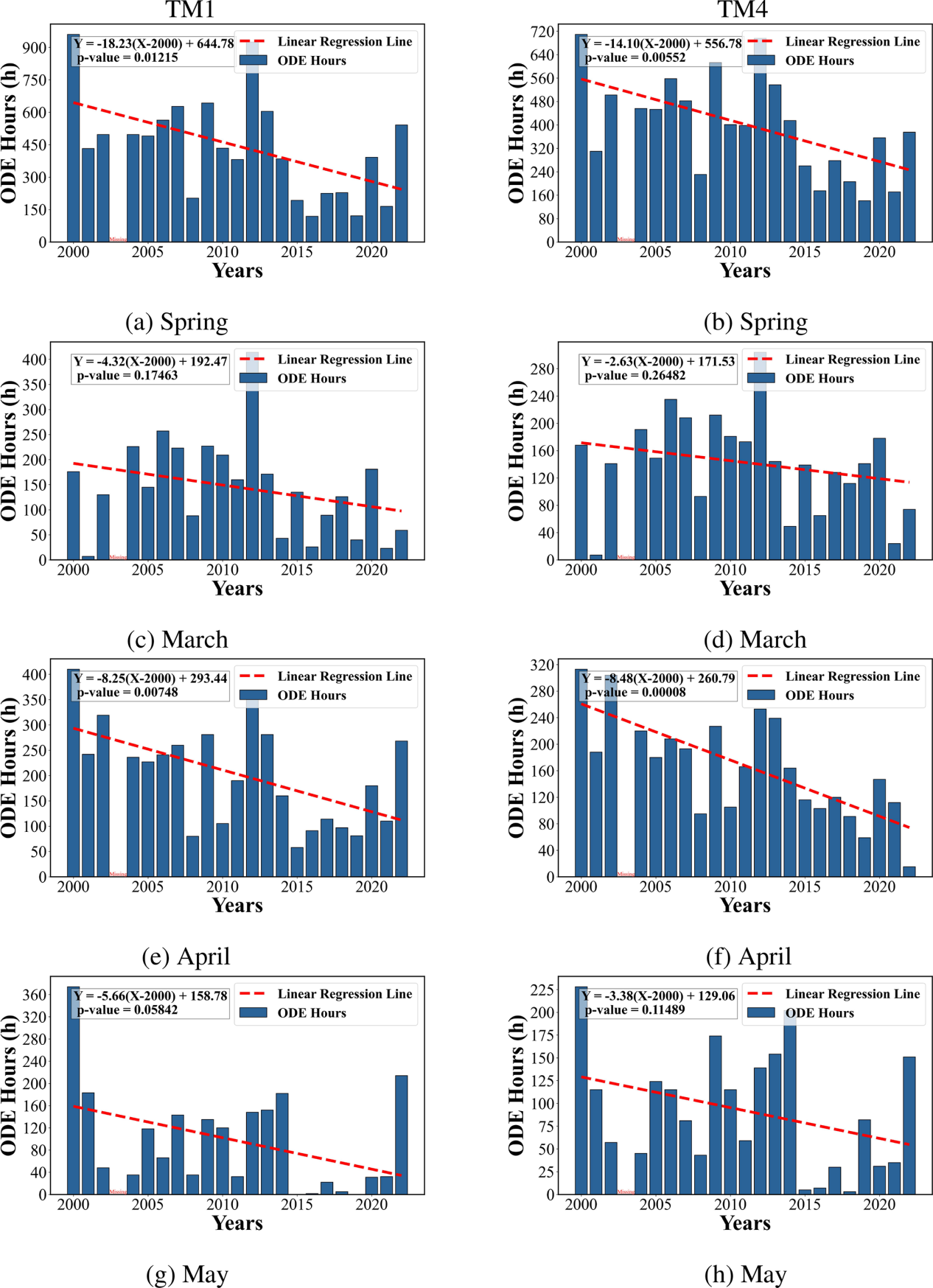 BRW站ODEs小时数的年际变化