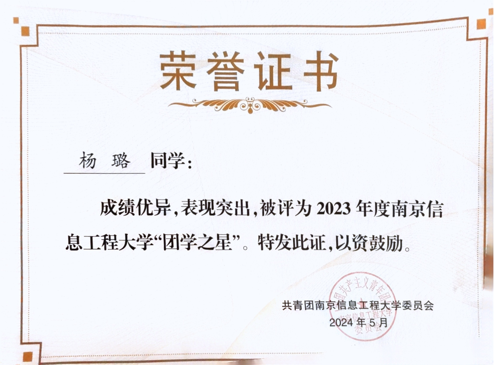 在准备竞赛的过程中,杨璐也遇到过迷茫和压力。“参加五一数模竞赛时,由于那段时间课业紧张,前期开始的并不算顺利。”杨璐说,尽管团队三人每天通宵备赛,但对模型的建立却毫无思路。“没有别的办法,只能迎难而上。”杨璐说。在专业老师的引导下,经过不懈的奋斗,最终,团队获得了三等奖的好成绩,而杨璐也通过此次比赛进一步熟悉了论文撰写的流程,为日后的学习打下了坚实的基础。
