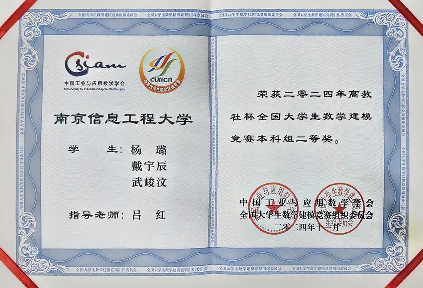 在备战竞赛期间,从早上八点到晚上十一点,杨璐几乎没有时间回宿舍,一下课便继续为竞赛论文做准备。这样繁忙的生活并未浇灭杨璐的斗志,相反,凭借着高度的自律,她力求每一件事都做到尽善尽美,最终取得了第十五届全国大学生数学竞赛一等奖、2024年高数社杯全国大学生数学建模竞赛本科组二等奖、2024年亚太地区大学生数学建模竞赛一等奖、第二十一届五一数学建模竞赛三等奖等优秀成果。