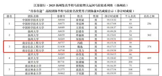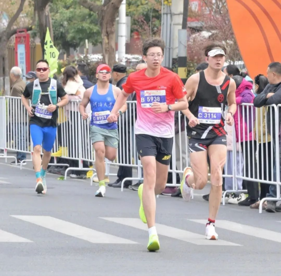 本次扬州半马,也是我的“首马”(首次参加马拉松),从刚起跑时担心人群拥挤、影响成绩的焦虑不安,到一公里左右时从人潮中脱颖而出,再到瘦西湖坡道的挑战——跑步难度加大,同时腿部肌肉开始酸胀,我凭借着在学校训练时练就的扎实身体素质,坚持地渡过了难关。后面希望为学校取得更多荣耀!