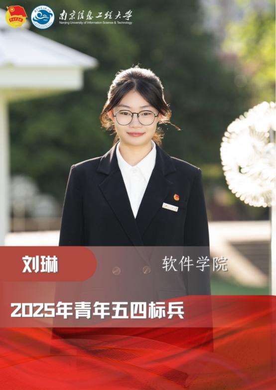 刘琳,中共预备党员,校田径队队长,软件学院学生会主席,海康威视实验班班长。她德智体美劳全面发展,综合成绩专业第一。曾获国家奖学金,校长奖学金,校三好学生标兵,连续两年校“体育明星”等荣誉。获美国大学生数学建模国际一等奖等国家级奖项10项,全国大学生数学建模竞赛江苏赛区二等奖等省级奖项12项;独立主持省级大学生创新训练项目1项,以第一发明人授权发明专利1项,受理发明专利1项,受理软件著作权2项,在中科院一区期刊发表sci论文一篇,北大中文核心一篇;在文体方面,达标国家二级运动员,作为校田径队队长带领团队斩获第22届全国大学生田径锦标赛混合接力4*400米全国冠军,并打破4项校纪录,累计获得8次田径项目冠军。